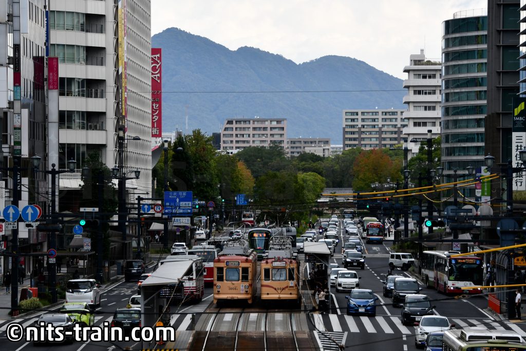 Am Folgetag war es schon Zeit für die Heimfahrt nach Tokyo. Noch im Rush-Hour versuchte ich, seltene Gesichter der Straßenbahn zu fotografieren. Zufälligerweise waren an diesem Tag die einzigen beiden pink-beige gefärbten Garnituren 3003 und 3101 unterwegs und begegneten sich auf der Strecke. Das Treffen dieser beider Züge hatte es innerhalb des Fahrplanjahres nur drei Mal gegeben. Wie ich im Nachhinein erfuhr, war dies auch die letzte Möglichkeit gewesen, da kurz nach meinem Besuch ein weiterer Fahrplanwechsel stattfand, sodass die Verstärkerzüge, auf die sie zugeteilt waren, nunmehr nicht mehr existieren.