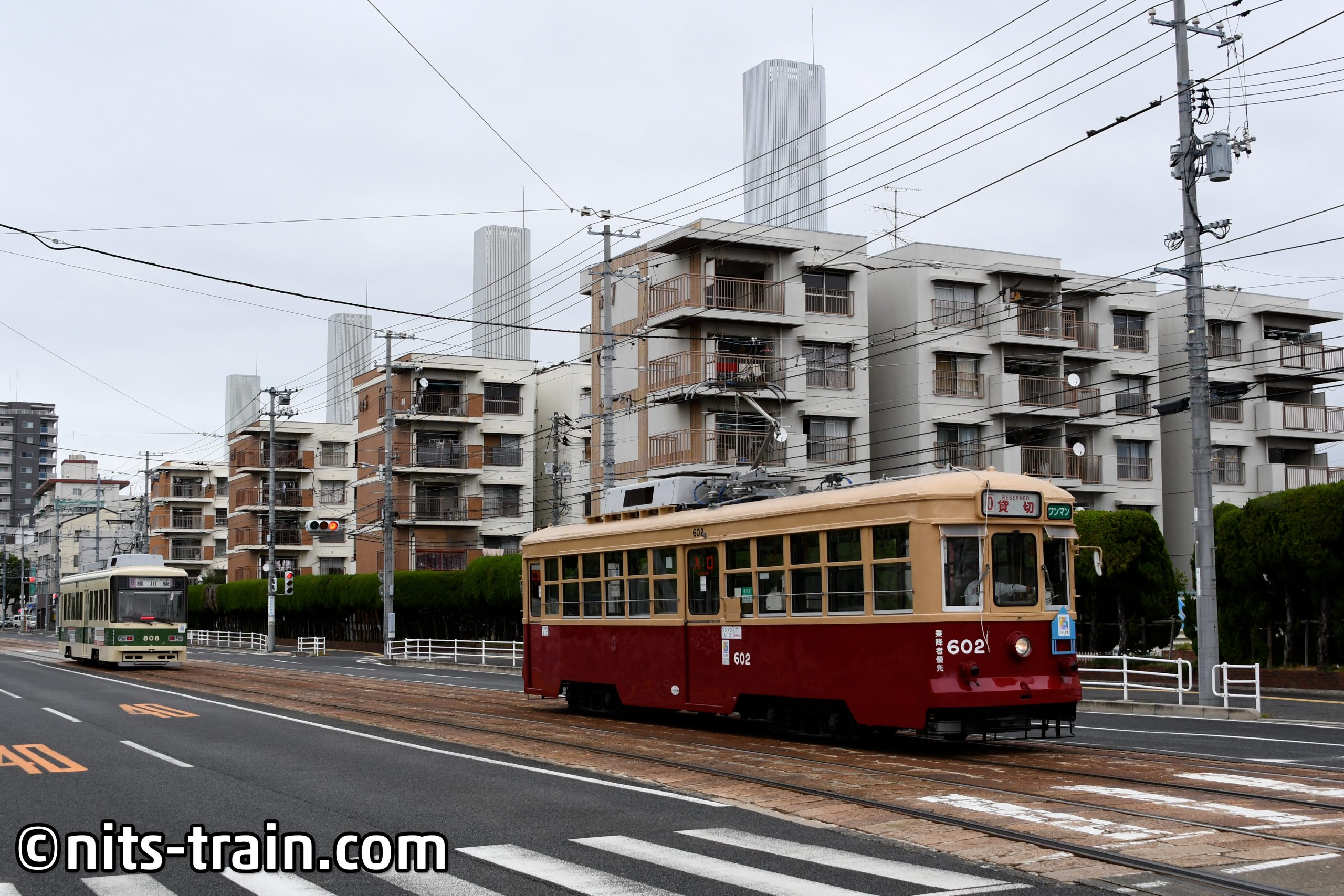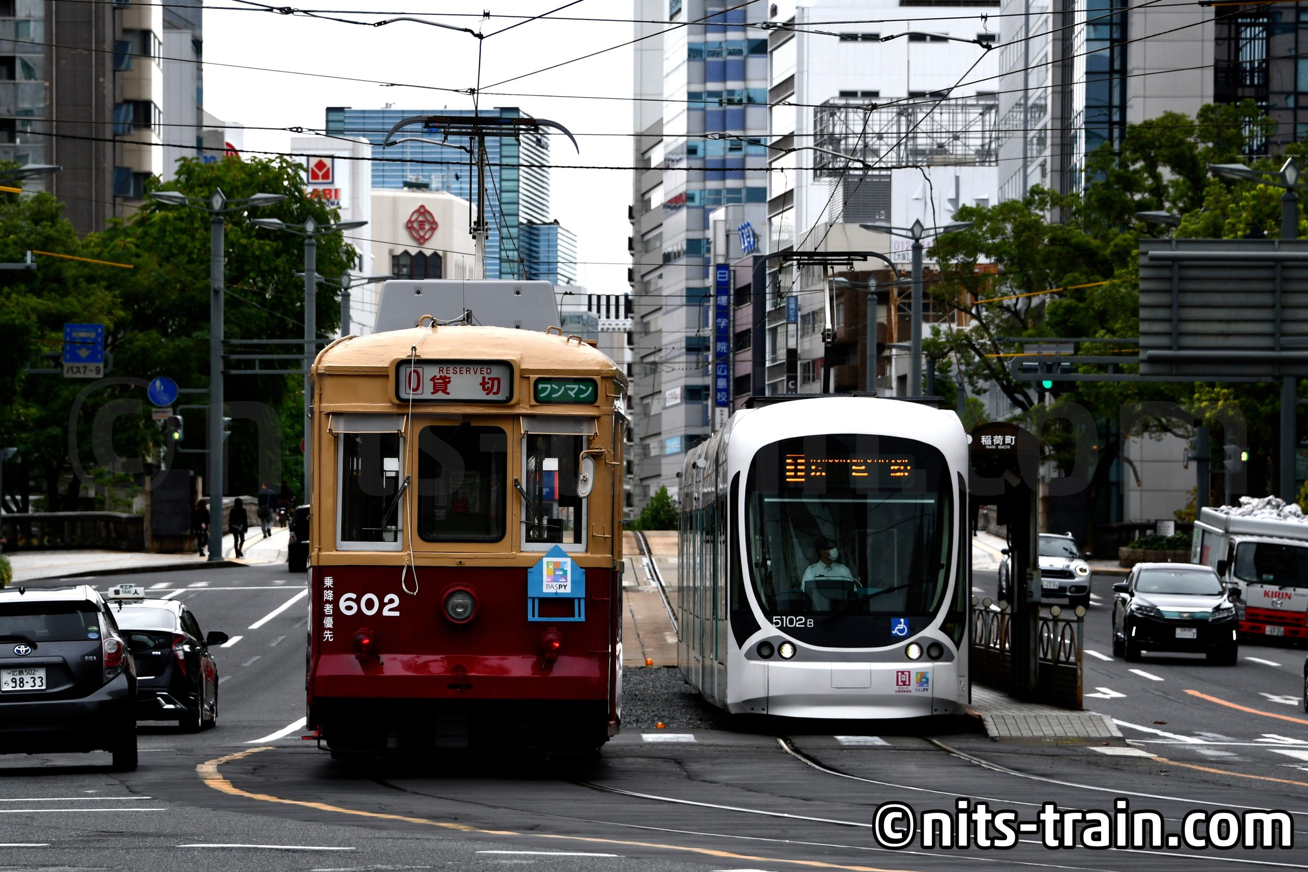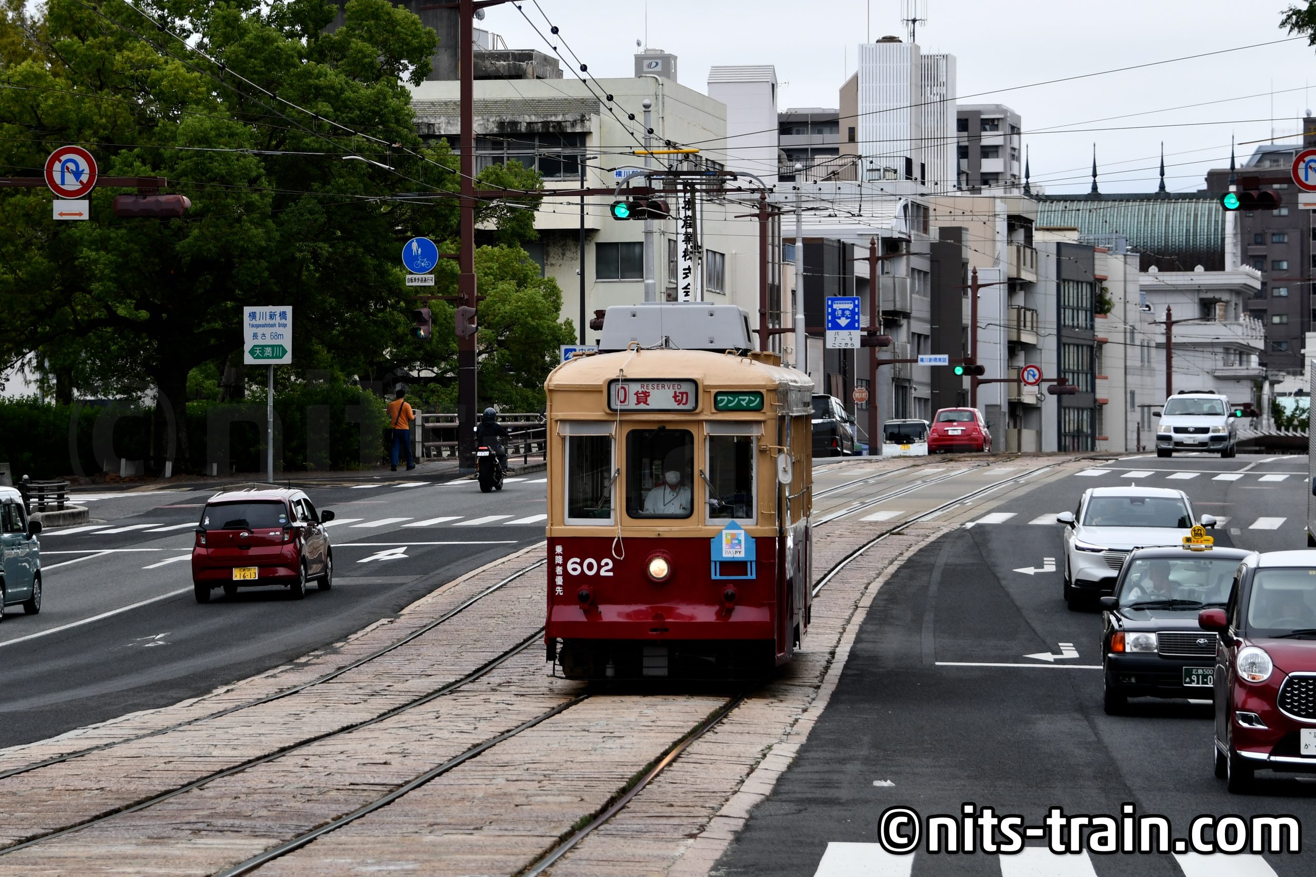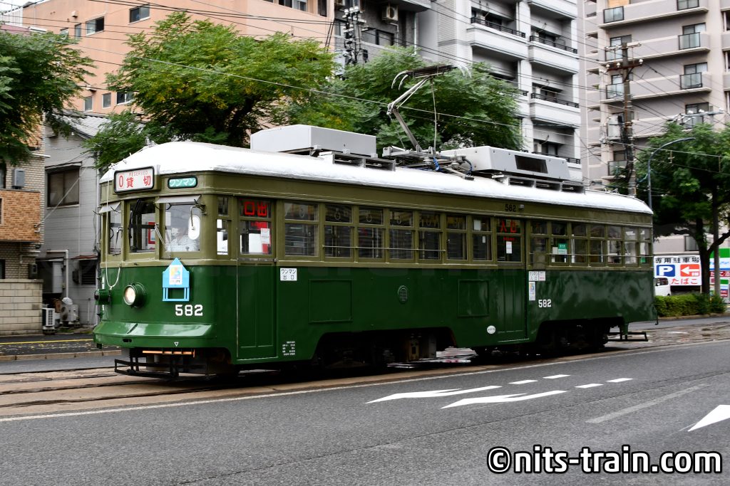 Der Wagen 602 hat die Besonderheit, dass dieser nicht aus Hiroshima stammt, sondern aus Norden Kyushus. Als der dortige Straßenbahnbetrieb aufgegeben wurde, wanderten einzelne Gebrauchtfahrzeuge nach Hiroshima, von denen nur noch dieser Wagen übrig geblieben ist. Im Vergleich zu den anderen Fahrzeugen erinnert die rot-beige Farbaufteilung an die Zeiten vor der Übernahme.