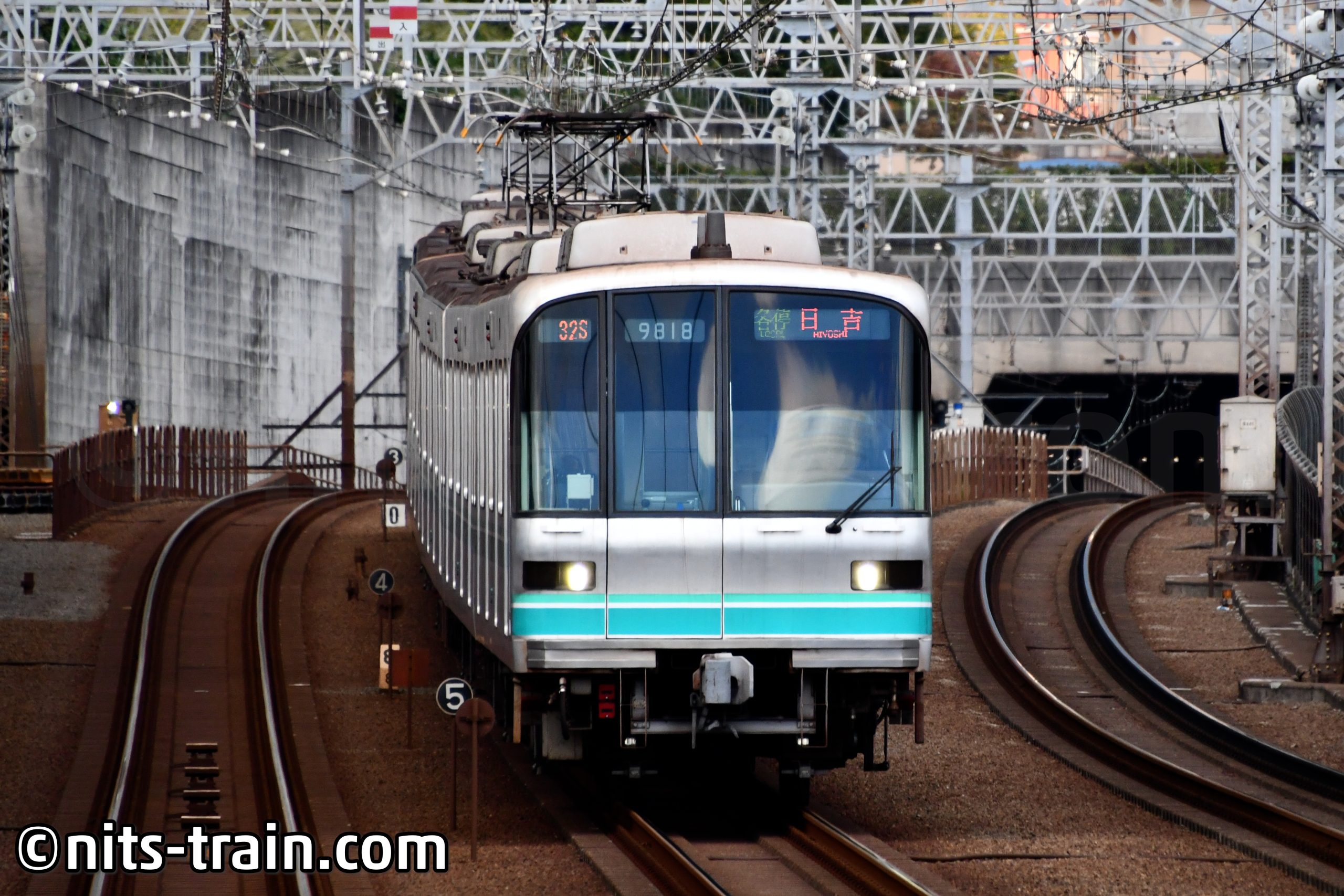 Nicht nur die Fukutoshin-Linie, sondern auch die Nanboku-Linie der Metro fährt auf der Tokyu-Eisenbahn weiter. Eine noch unmodernisierte Garnitur der Baureihe 9000 folgt dem Expresszug, der auf dem Gleis nebenan durchgerast ist.