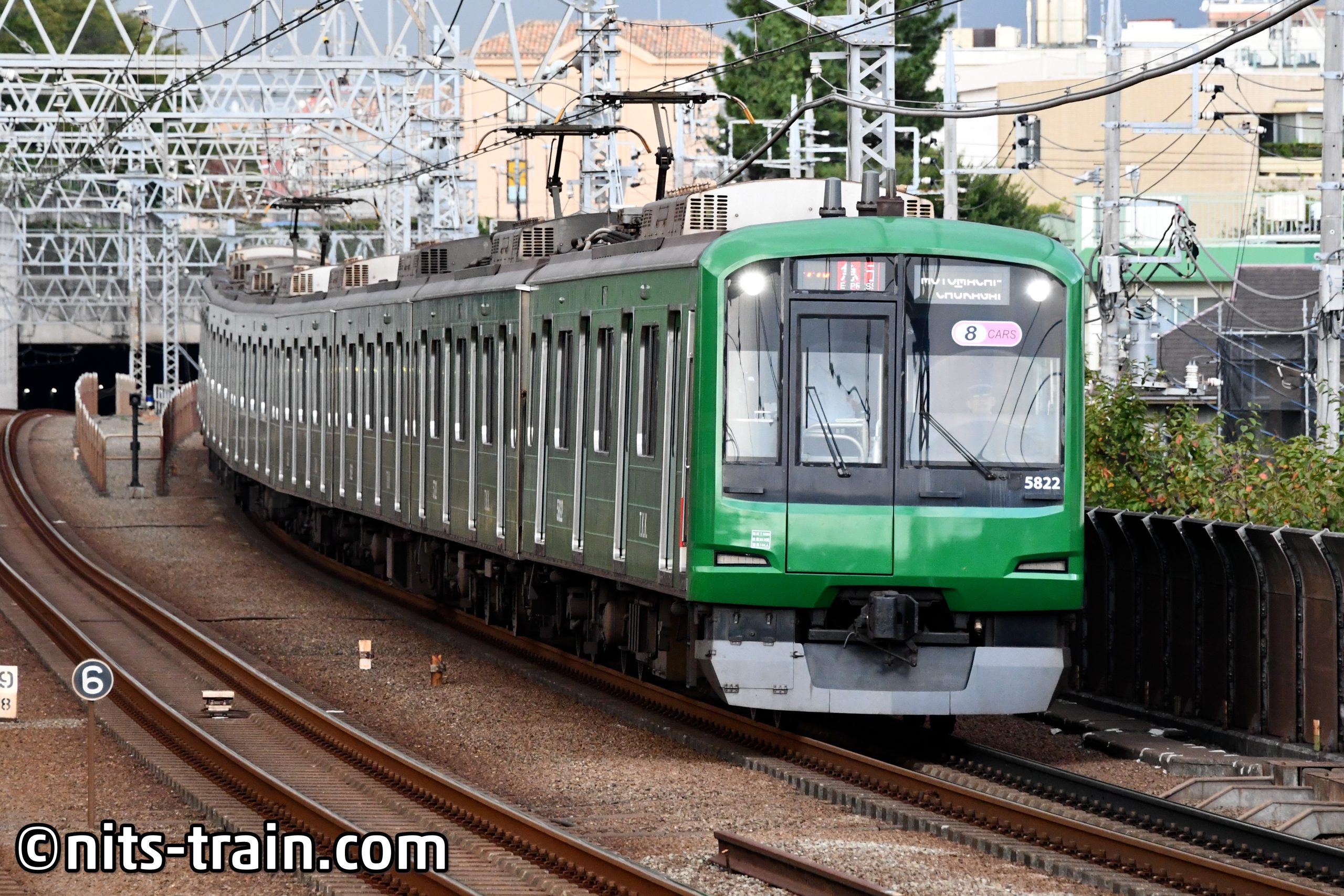 In Tamagawa (Google-Maps) angekommen, zuckte ich meine Kamera - und schon kommt als erstes eine besondere Garnitur. Garnitur 5822 ist nämlich in der alten Lackvariante der Tokyu-Eisenbahn beklebt worden und wird aufgrund der Farbe auch Knallfrosch genannt.
