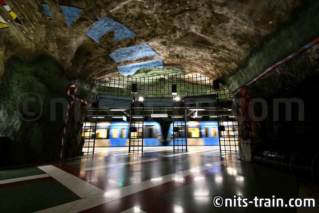 Das Schöne an Stockholm: Auch im Untergrund gibt es viele Dinge zu bestaunen. So auch die unterschiedlichen Gestaltungen der U-Bahnhöfe, hier zum Beispiel an der Station Tekniska högskolan. Gerade hier verschönert die Serie C30 das Gesamtbild, da die helle Farbe des Wagens einen besseren Kontast bietet als die C20, welche zwar mit ihrem metallischen Glanz ebenso schön sein mag, aber kaum etwas hervorhebt.