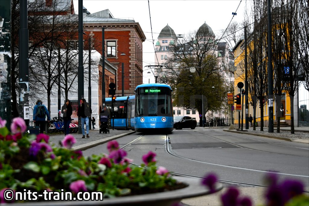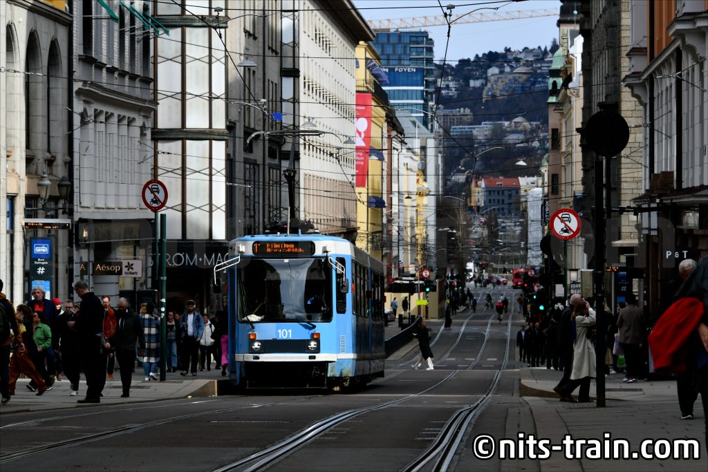 Endlich an einem Ort angekommen, den ich bereits gut kenne: Oslo. Bis unser norwegischer Teamkollege eintrifft, hatte ich noch ein bisschen Zeit und begab mich auf dem Bahnhofsvorplatz, um ein bisschen Straßenbahn zu fotografieren.