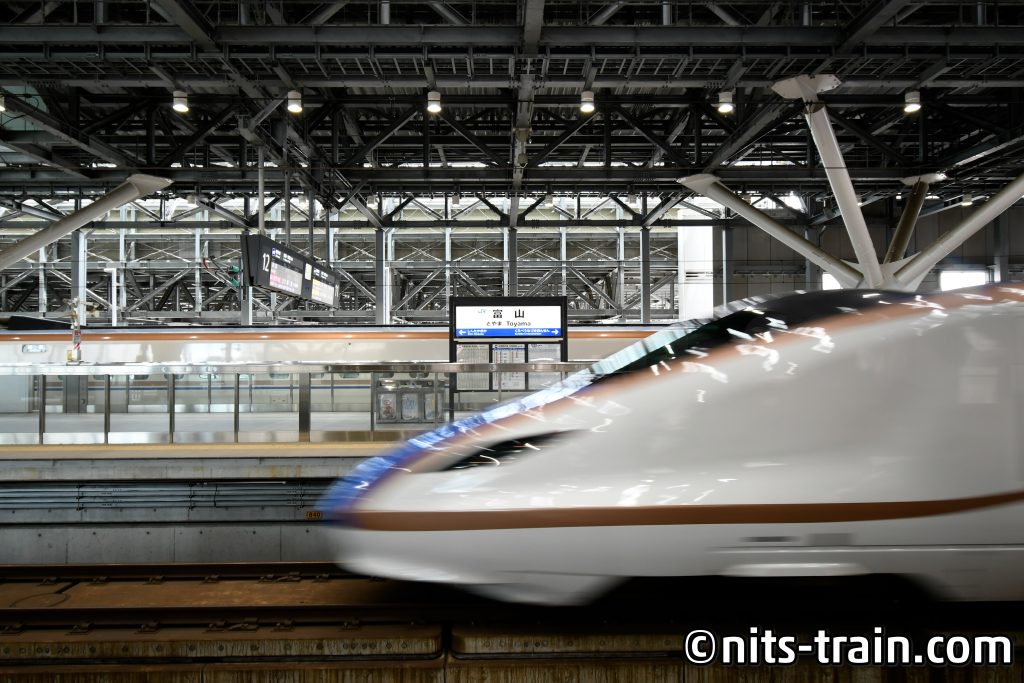 Hoch auf den Shinkansen-Bahnsteig, nahm ich den gebuchten Zug nach Toyama, eine Küstenstadt am japanischen Meer.