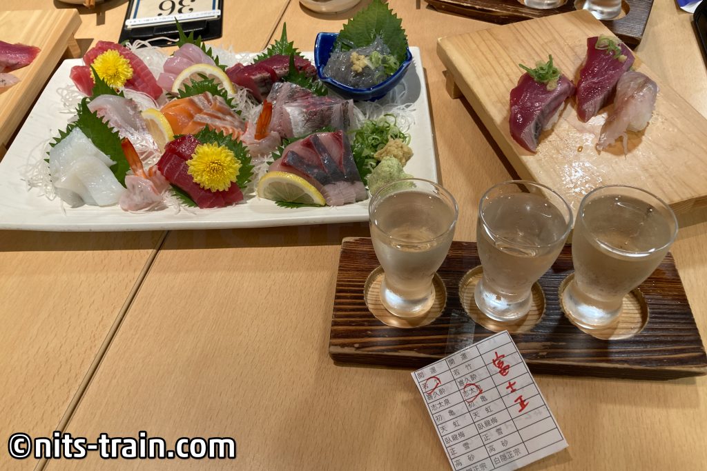 Mal eine Seltenheit, dass hier was anderes erscheint als Bahn: Unser Abendessen genossen wir in einem Sushi-Laden den wir zufällig entdeckt haben. Das Tolle an der Sache: Die frischen Fische stammen aus dem Hafen von Numazu. Das ist genau das, was mich am meisten triggert, Japans unterschiedliche Orte zu erkunden, denn auch die selben Fischsorten können je nach Region unterschiedlich schmecken, vor allem die die direkt aus dem Hafen zum Geschäft weitergereicht werden.