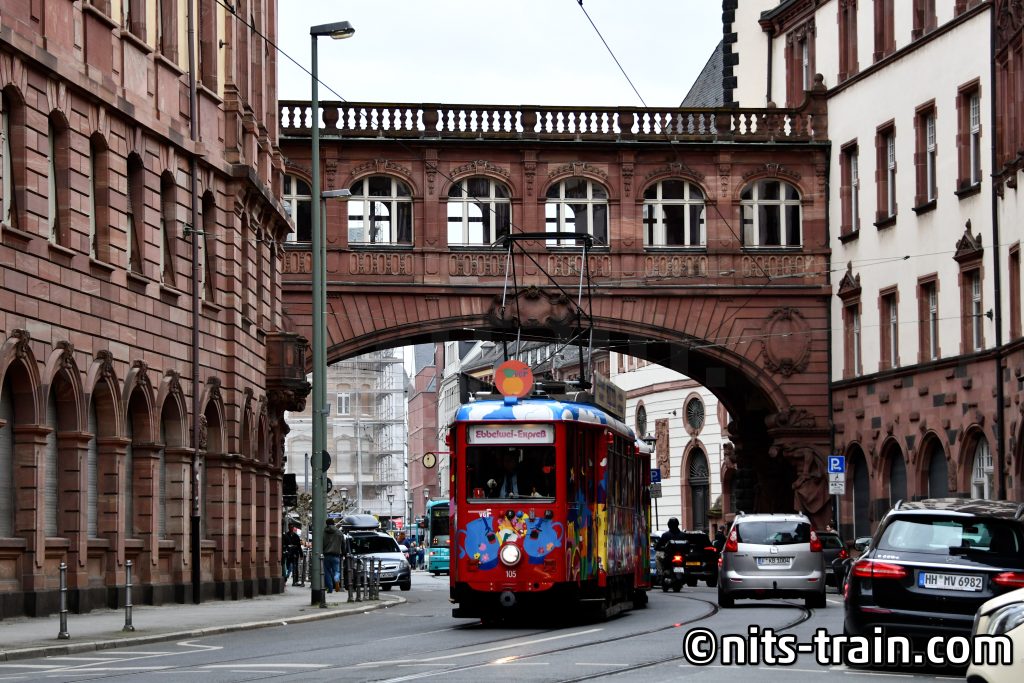 フランクフルトに戻ってからすぐ、Pt型を目撃したので追いかけ。保存車の148はほかのPtと違って登場当時のカラーリングなので、かなり目立つ。