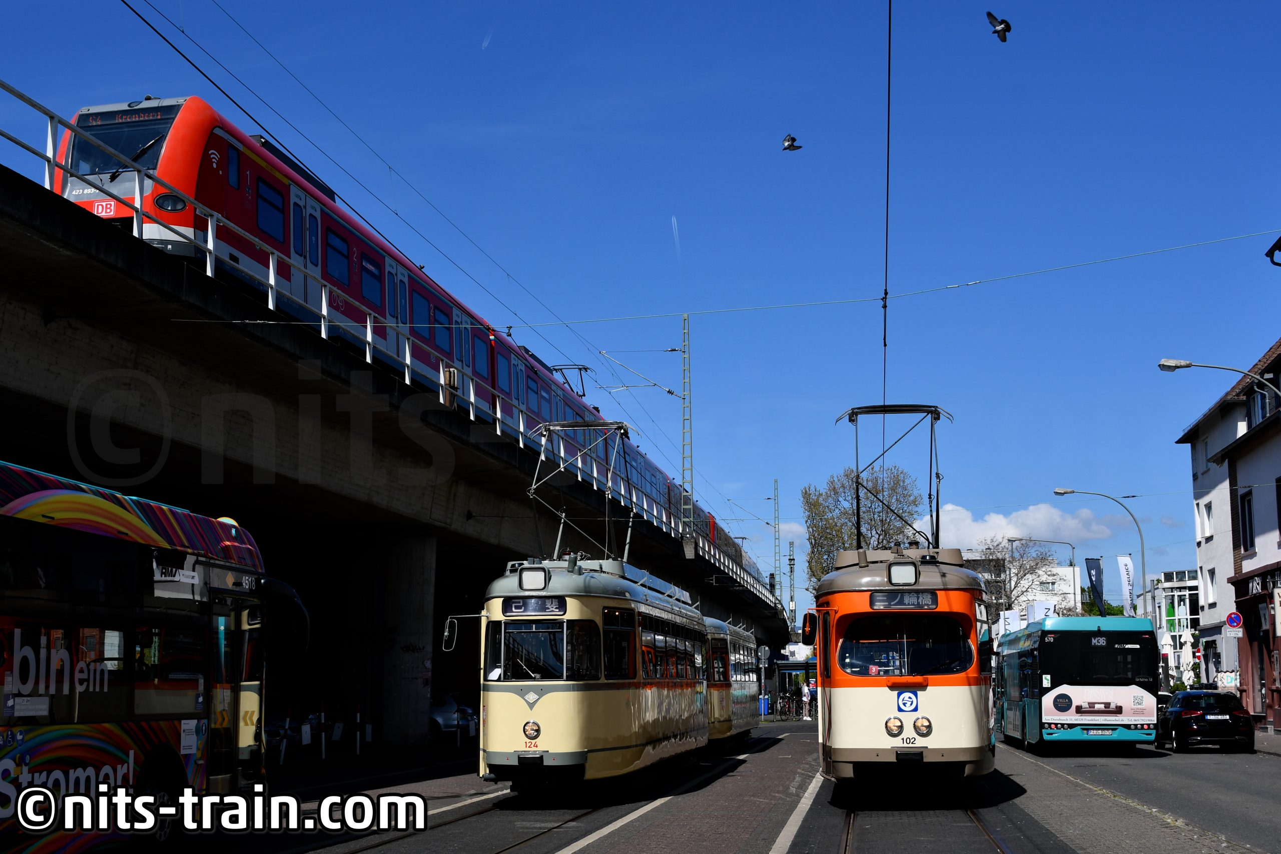 フランクフルトに戻ってからすぐ、Pt型を目撃したので追いかけ。保存車の148はほかのPtと違って登場当時のカラーリングなので、かなり目立つ。