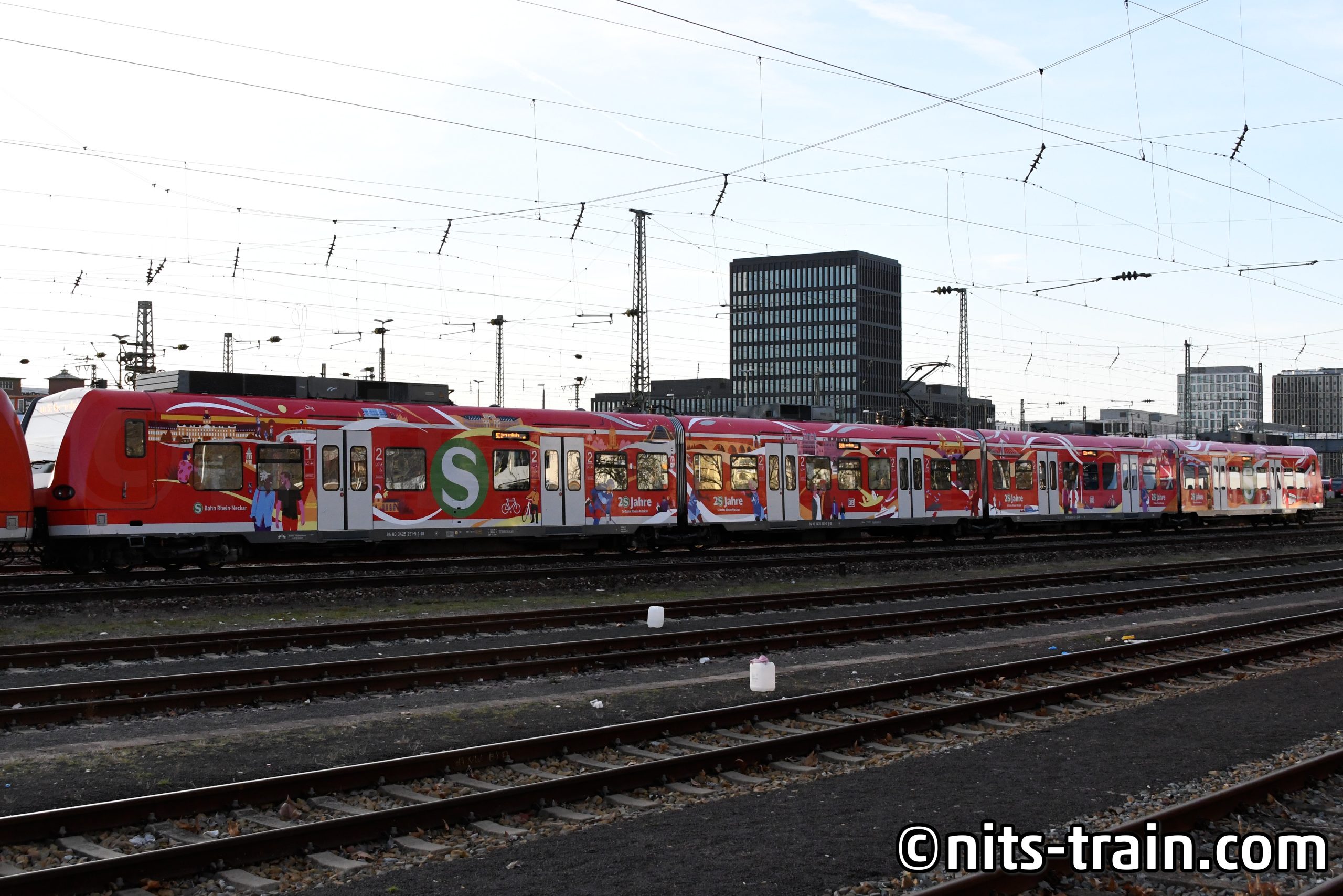 眺めて感動しているのもつかの間、S-Bahnが横を通過して行く。派手に落書きされてるなぁと逆光ながらも列車のほうに目をやると...