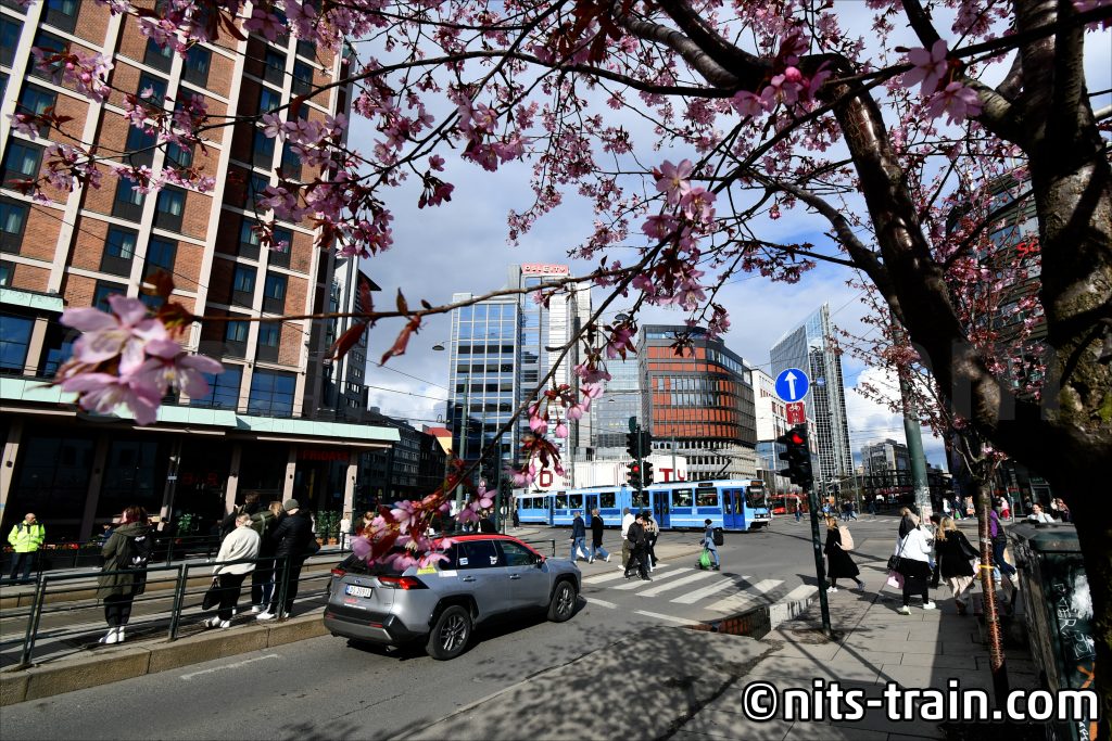 駅前に出て、相変わらず使い慣れていない広角レンズで試しに数枚。ドイツでは桜の季節は終わっているのに、ノルウェーではまだ咲いていたのでこれは写真に収めるしかない。ただ、駅前の交差点ともあり、人通りも多くなかなかタイミングが難しかった。時間の都合上、一番きれいに収まったのはこの一枚だったが、できればもっと頑張りたかったと思う気持ちも少しだけある。また次回かな。