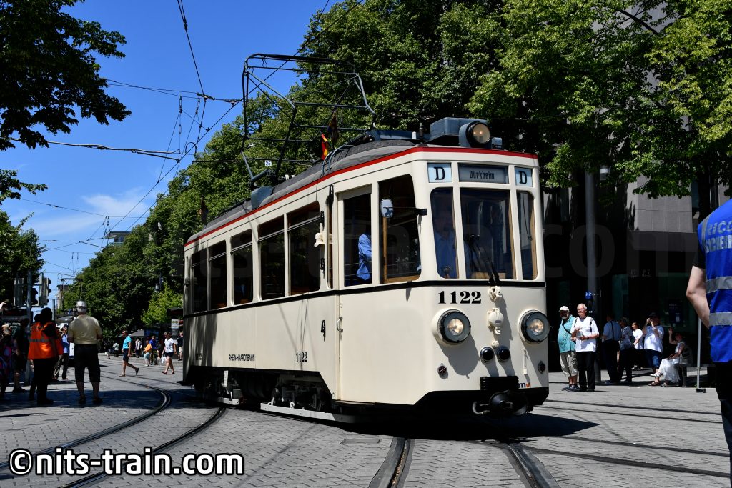 さて、パレードが開始。先導するのはrnvが持っている中でも古い動態保存車両の45/46号編成(または4045号)。こちらはFuchs製のT4+S4型で、1928年に製造されたもの。