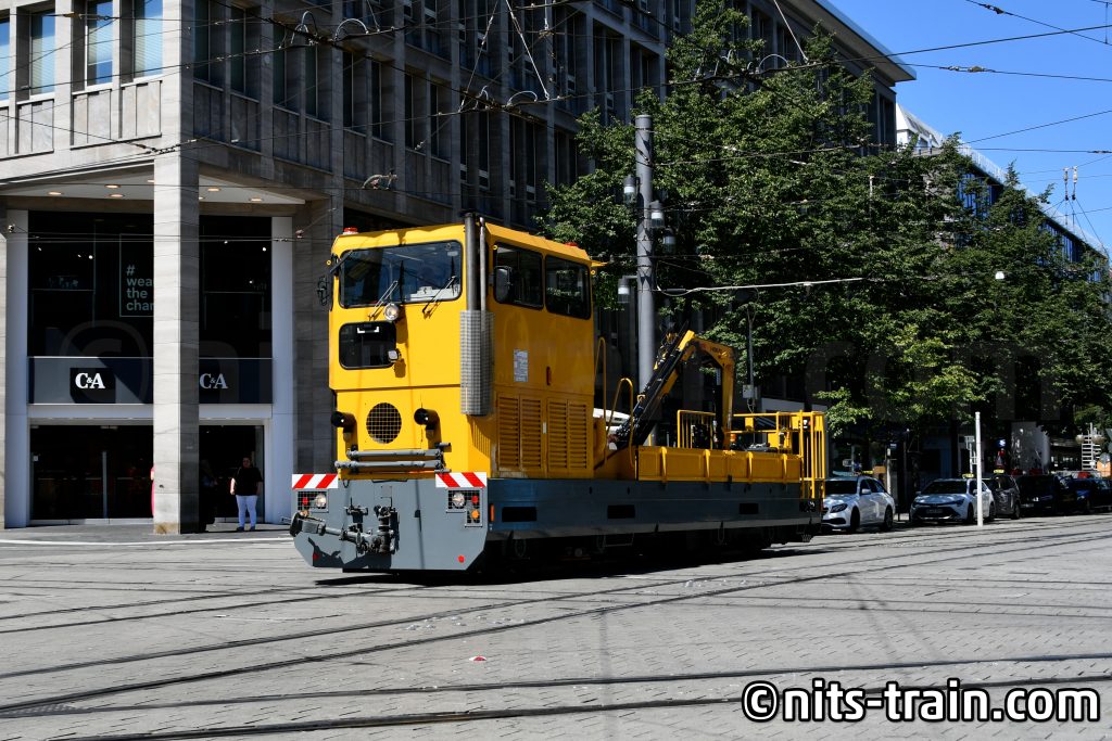 こちらは1985年製のKlv53型作業車(2)010号。Klv53型といえばDBなどの本線用のクレーン作業車なのですが、イレギュラータイプとしてメーターゲージ版のトラム向けが存在するんです。かなりレアなので記録できてよかった。
