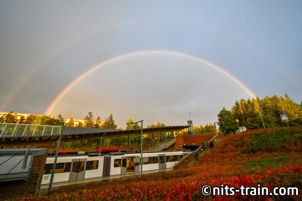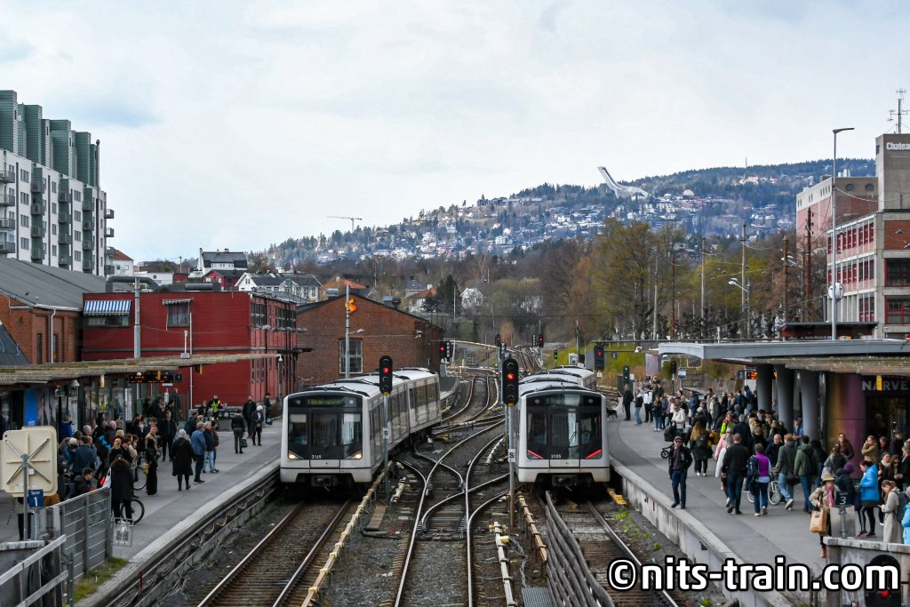 L1号線で一駅移動。ノルウェーの鉄道発祥の地とも言われるSagdalenの記念広場を手前に、現在の路線を撮影。72型もあとどれだけ長く運転されるんでしょうかねぇ。