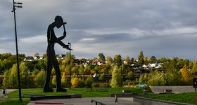 車庫から中心地方面にはそのまま散歩がてら歩きながら戻ることに。こうしたドイツの住宅街の風景も絡めて撮る市電も悪くない。