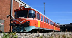 二人ともSanderau方面に行ったことが無かったので、この後に入線してきた営業列車に乗って終点まで。終点の一つ手前に車庫があるので、ループ線から徒歩でそちらのほうへ。ちょうど乗車していた列車が折り返してきたので後ろからも記録。現在では埋められている進行方向左側に設置されている扉が目立つ。調べる限り、使用された形跡が一切無い。