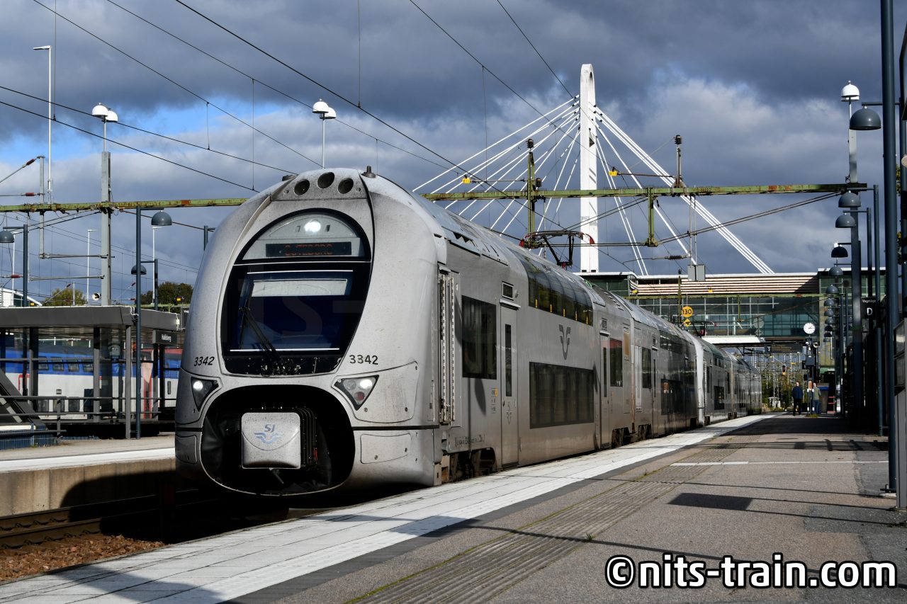 スウェーデン国鉄のSJとは別に、ヨーテボリとストックホルムを高速で結ぶ列車がVR。フィンランドの国鉄ですが、去年までは香港のMTRによる運行でした。最高時速200kmでの運転は、MTRXの愛称で運行された赤い車体の時代はまさにレッドアローでしたが、運行会社が変更されてからはフィンランド国鉄のカラーにラッピングされたのでもう見ることができないのが残念ですね。ラッピングが中途半端なので部分的に元の色が見えてますけど。