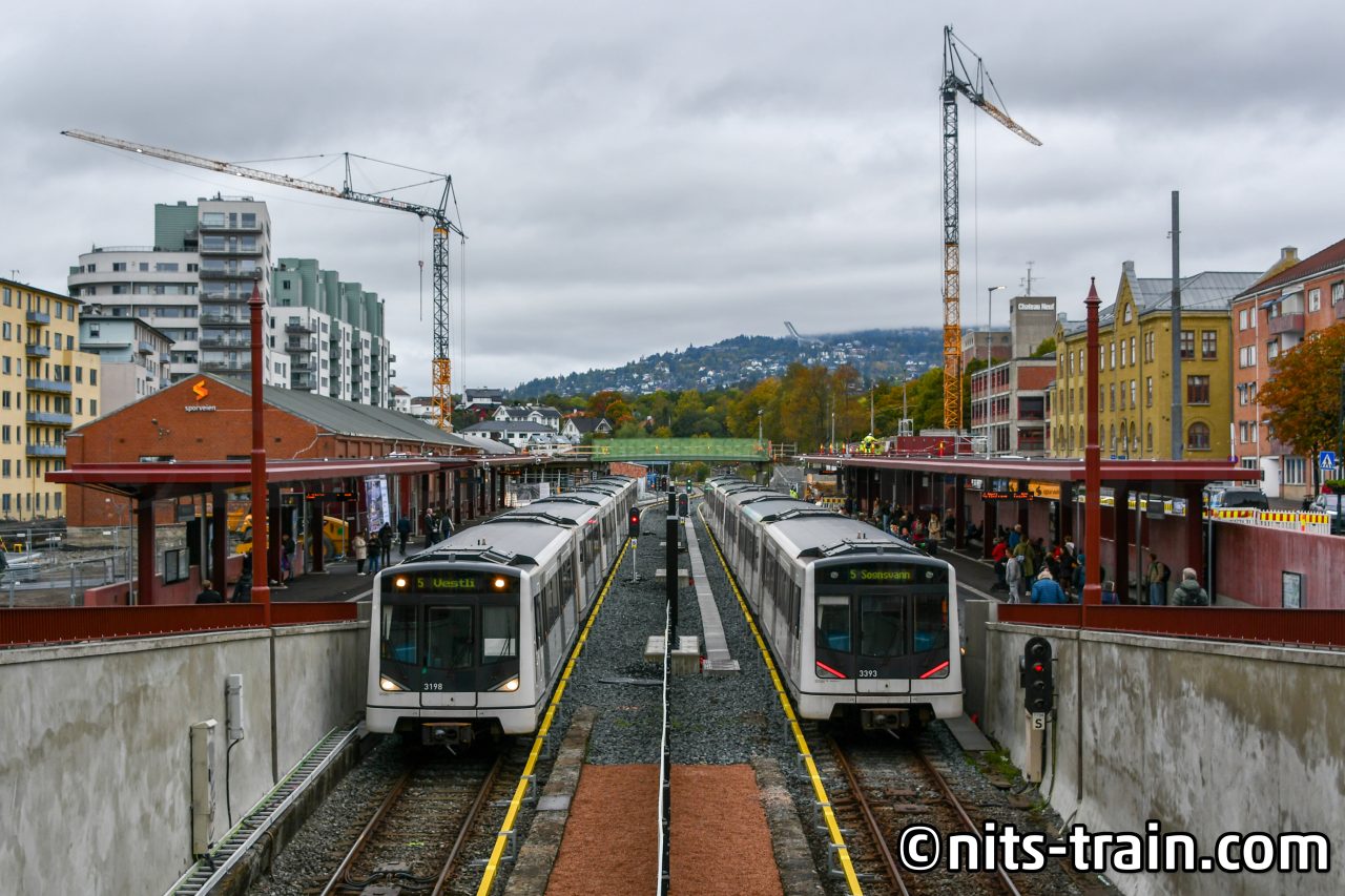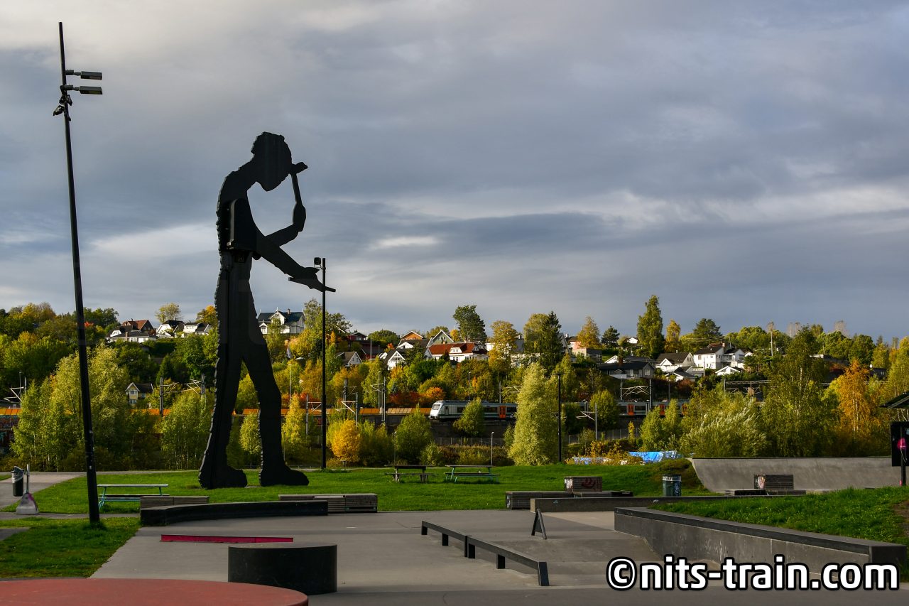 L1号線で一駅移動。ノルウェーの鉄道発祥の地とも言われるSagdalenの記念広場を手前に、現在の路線を撮影。72型もあとどれだけ長く運転されるんでしょうかねぇ。